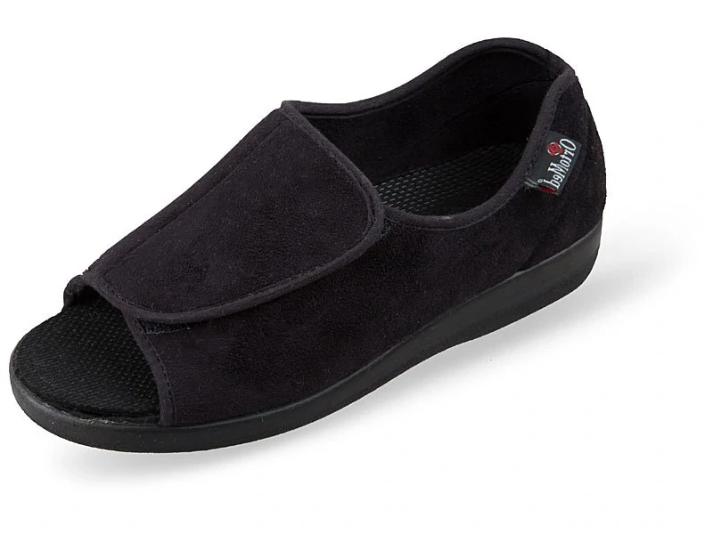 Pohodlné zdravotní textilní boty v černé barvě se zapínáním na suchý zip.